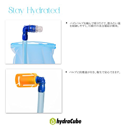 水袋は広口を採用していますので、氷なども簡単に入れる事ができ、夏場のトレランの際にはしっかりと保冷された水を給水する事が出来る為、運動中の熱中症予防にもなります。チューブの吸い口は軽く噛むだけで簡単に給水を行う事が出来る為、運動中の足を止める必要もありません。またチューブがずれないように固定出来るホースクリップも付いていますので、激しい運動中もチューブが邪魔になりません。