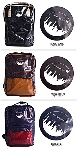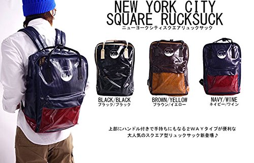 NEWYORKCITY 四角リュック スクエア デイパック リュックサック バックパック カンケンバッグ (BROWN/YELLOW(ブラウン/イエロー))