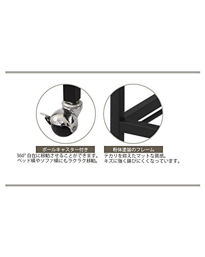 脚底にはキャスターが付いていますので、お部屋の掃除などを行う際にもキャスターにて楽に移動が行えます。木製の収納棚は洋服を入れたり、必要な小物類を収納したりと様々収納を行うことが出来ます。