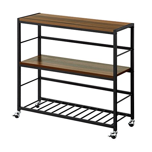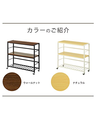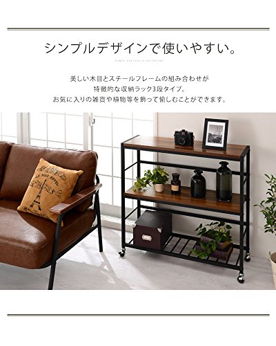 収納ラック 木製 3段 キャスター スチールフレーム スリムラック オープンシェルフ ワゴン ウォールナット