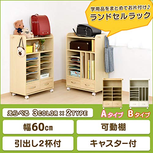 収納ラック キャスター付 木製 リビング収納 引き出し ランドセルラック 本棚 棚 幅60cm ウォールナット B
