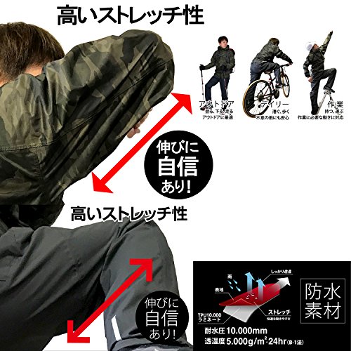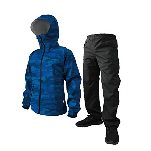 ストレッチシールド レインジャケット&レインパンツ ストレッチ性・防水性・透湿性を兼ね備えたレインウエア! (3Lサイズ, ブルーカモ✕ブラック)