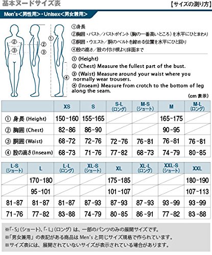 色はチャコールで、サイズは6サイズあります。メンズ用・レディース用兼用のレインパンツです。