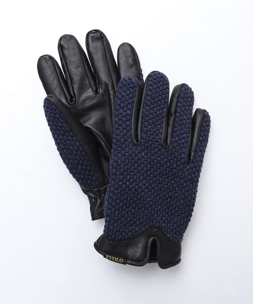 こちらのエヴォログ製のメンズ用スマホ対応手袋は、甲側にニット素材を採用していて、手のひら部分にはラムレザーを採用して作られています。