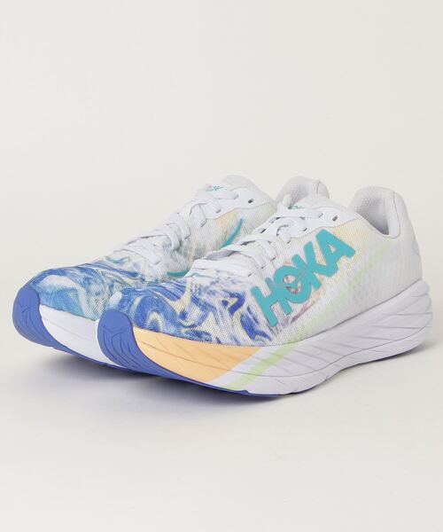 ホカオネオネのメンズ用「ロケットX」は、メンズとレディースと同じデザインで展開があります。跳ね返りと軽さ、プロアスリートに向いている商品です。ホカオネオネの中でもっとも軽量なロードランニング用のシューズになります。