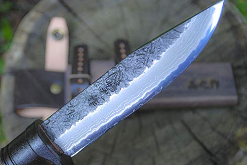 この山鉈は日本の刃物店「トヨクニ」で販売されている山鉈です。鍛造によって作られたブレードはしなやかさと頑強さがあって数多くの人に愛用されています。この山鉈は15層のダマスカス鋼と青髪2号という炭素鋼で作られていて和式の良い部分がよく出ているのが特徴で、刃持ちが良く切れ味が鋭く、研ぎやすいとかなりの代物となっています!