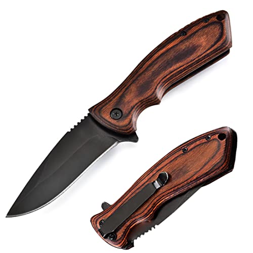かっこいいデザインの折りたたみナイフをお探しの方には、こちらのモデルがおすすめです。持ち手がウッド、刃がブラックカラーとなっています。
