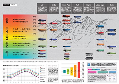 バランスのよく使いやすいアルファライト500Xよりさらに使用温度が低くなり春~秋まで幅広い場所で使えるシュラフで、500Xより評価が高く収納サイズはφ19×35センチとなっています。評価がいい理由は、化繊シュラフですが重さは1360グラムとツーリングや登山でも使える大きさと、シュラフが立体的な形状をしていてマイクロライトを使用しているので保温性もあります。