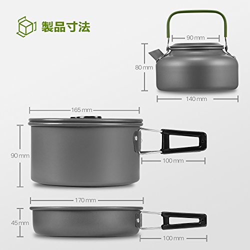 アルミニウム素材を採用して作られているフライパン、鍋、ポットなどの計三点セットのクッカーになります。ハンドル部分と蓋の持ち手にはシリコンを素材に使用していますので、やけどなどの心配もせずに持つことができます。
