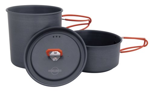 フライパンと鍋とその他の備品が一つのセットになっているコスパの高い人気クッカーセットになります。丈夫なアルミニウムを素材に採用し、外側はハードアノダイズド加工が施されていて、表面硬度が高いので傷つきにくく、耐摩耗性に優れています。