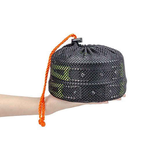 熱くなりにくいシリコンカバー付きのハンドルを取っ手と鍋ブタへと採用していますので、やけどのリスクも少なく調理できます。クッカーの内側部分には目盛りも付いていますので、調理のしやすさにもこだわられて作られているクッカーです。また使用後は通気性に優れたメッシュ仕様の収納袋へと入れて、ソロでのキャンプや登山などにも楽に携行できます!