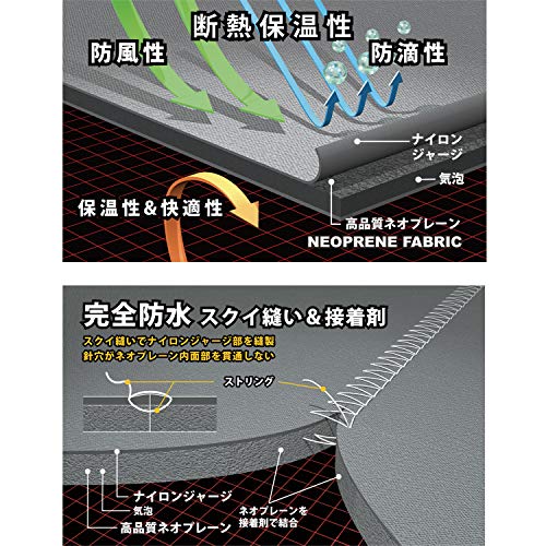 指先からの冷えを抑制する保温性や防寒性に優れている手袋になりますので、体力の低下を抑えます。グローブの表面部分はつぶつぶ状になっていますので、海中の物を掴んだ際も滑りにくくしっかりと持ち上げる事ができます。