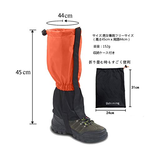 Ushining 登山スパッツ 登山ゲイター ロングスパッツ 防水 泥除け 雨よけ 雪対策 トレッキング アウトドア 男女兼用