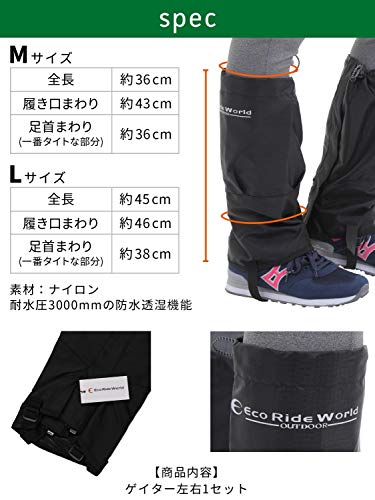 Eco Ride World 撥水 防水 ロングスパッツ ゲーター ゲイター 登山 トレッキング (レッド, L) SO_317