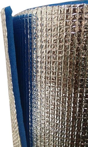 アルミエンボス加工により、アルミ面が肌にべたつかず快適。アルミ面を上にすると体温を熱反射して温かくなります。こちらは保温断熱性能が高い製品ですが、厚さが2mmと薄いため、エアーマットなどと併用して使用します。バンガローや山小屋など平らな場面では大変軽量コンパクトで重宝します。