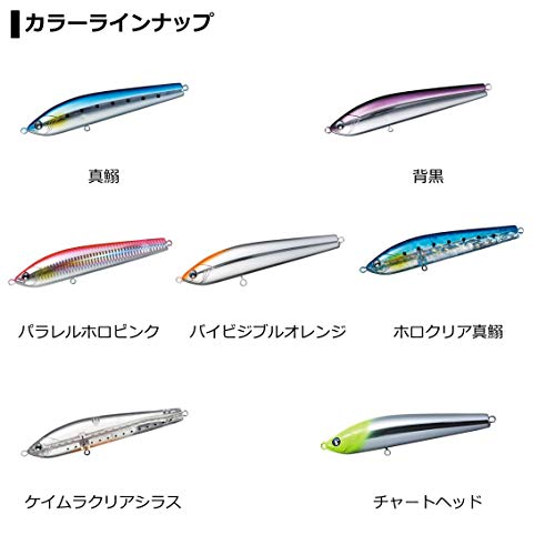 マグロ様にチューニングされていますが、青物にも全然使用できます。水平姿勢でフォールするようにウエイトバランスが組まれており、水面に追いあげられた小型ベイトを演出し、フォール時のバイトを誘発します。選び方として超大型青物を狙う時に良いかと思います。