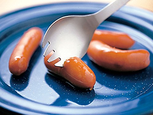 マグ同様に、先割れスプーンもスノーピークのチタンのものがおすすめです。こちらは軽量かつ耐久性に優れており、使い捨てのクオリティでは全くありません。また、この色・見た目もギアっぽさがあってかっこいいですよね。これ一本で食事をこなせますので、かなりの軽量化に繋がります。
