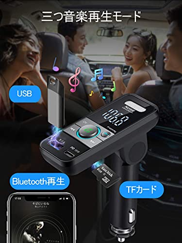 2021最新のFMトランスミッター。QC3.0とPD3.0急速充電技術により、最大3台同時充電が可能です。Bluetooth、USBメモリ(64GB)、TFカード(64GB)という3つの音楽再生モードに対応し、スマホ等の音楽をカーオーディオから高音質で再生することを楽しめます。