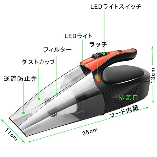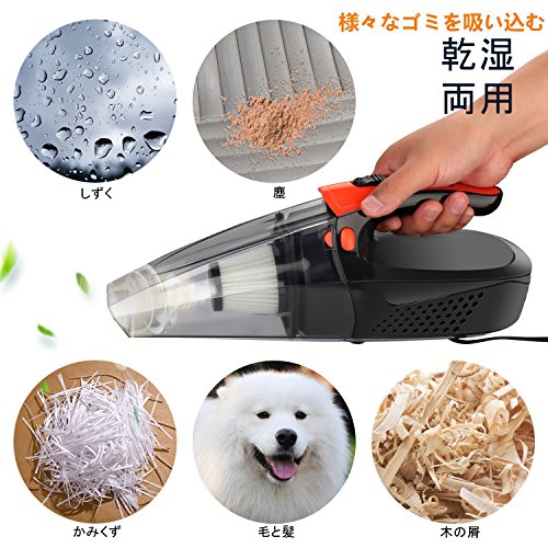 車用掃除機超吸引 乾湿両用 カークリーナー ハンディクリーナー【2018最新版】掃除機【LEDライト付き】 4.5mロング電源コードSTR-VC006 DC 12V 120W 4500PA (ブラック) 日本語説明書付き
