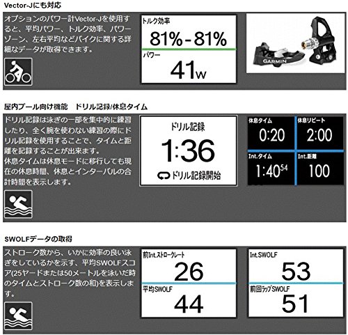 レースやトレーニングに備えて十分な準備ができるよう、トレーニングやリカバリーの把握ができます。パフォーマンス分析に活用できる重要なランニングデータ、サイクリング、スイムでの水中距離、ペース、ストローク数などの測定が可能な機能が付いています。