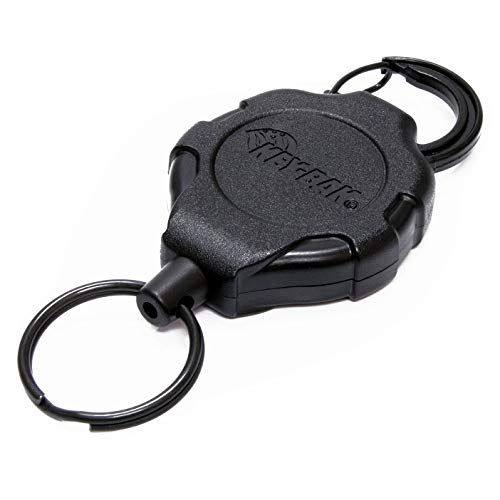 こちらはカラビナ付きのピンオンリール。ベルトループなどに取り付けて、釣りの最中に使う道具や小物などを、落下による紛失を防止します。摩擦に強いケブラー繊維、耐荷重も20kgです。かなり重い小物、例えばマルチツールなどを取り付けても安心で、しかも丈夫で長持ちするキーリールです。価格は1000円程度です。