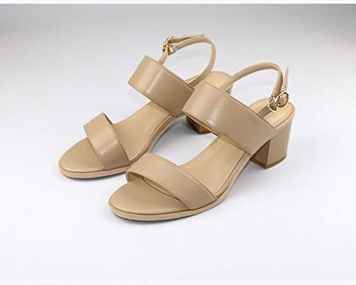 アノミセサンダル レディース 太ヒールサンダル 歩きやすい おしゃれ オフィスサンダル 夏サンダル ローマサンダル 滑止め レザーサンダル アウトドア (23, ベージュ)