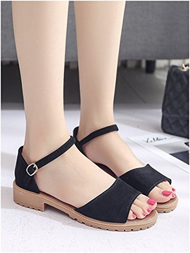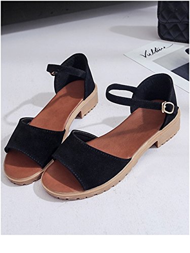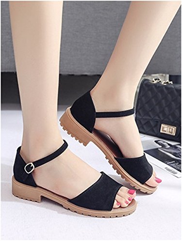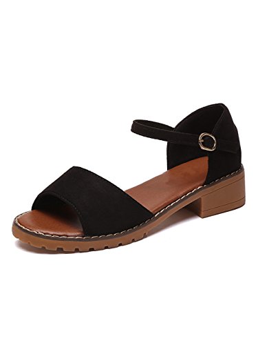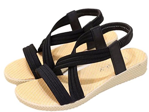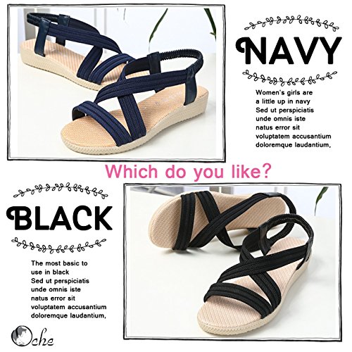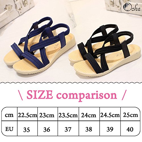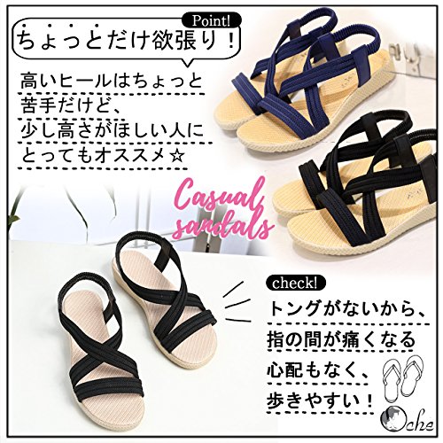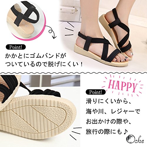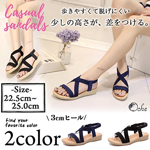 Oche ヒール 低め 3cm カジュアル ビーチ サンダル かかと ゴム レディース (23.0cm, ブラック)