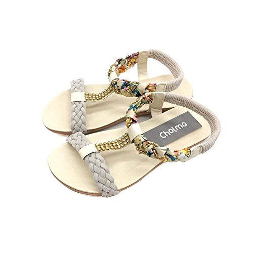 (チョロモ) Cholmo ぺたんこ サンダル 春 夏 秋 必須な一足 楽チン 歩きやすい どんな足にもフィット 靴 ウッド ビーズ レディース ガールズ (24, 白)