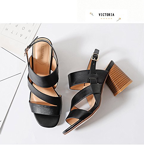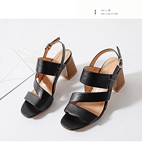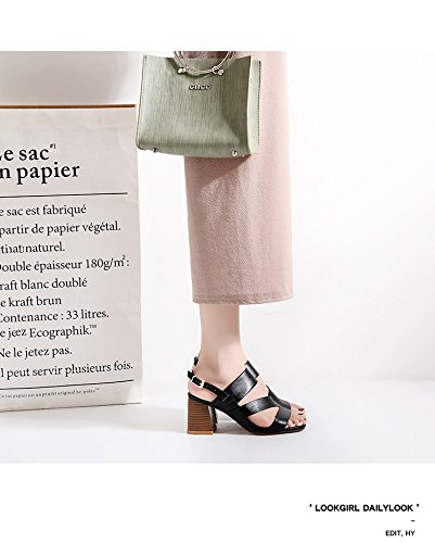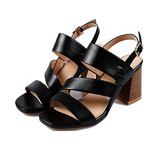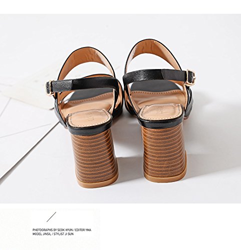 Kayaa ミュール サンダル レディース オフィス 通勤サンダル 歩きやすい おしゃれ 太めヒール 夏サンダル アウトドア サンダル ローマサンダル 滑止め レザーサンダル (23.5cm, ブラック)