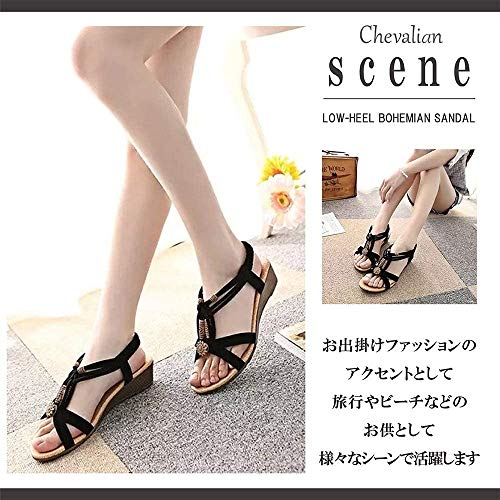 カジュアルさとエレガントさを両方兼ね備えているボヘミアンスタイルのレディースサンダルになります。街中へのお出かけをはじめ、旅行や海水浴などのアウトドアレジャーにも最適なおしゃれサンダルです。