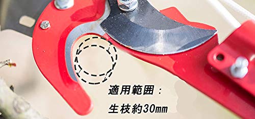 直径3cmの太さの枝も楽々と切断する事が出来る鋭い刃を持っていて、今バウンド方式と滑車が装備されていますので、力の弱い女性やお年寄りの方でも作業を楽に行えます。