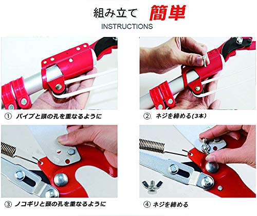 ポールはご自身の使いやすい長さに無段階で固定を行えます。両刃駆動で切れ味抜群なので、太さのある枝も楽々切断可能です。ハンドル部分は切断したい枝の位置に合わせて、様々な角度に変えられる使い方が出来る為、届きづらい場所の枝も楽な姿勢で切り落とす事ができます。