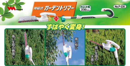 ムサシ 伸縮式ガーデントリマー(ACタイプ) 「ワンタッチ取付で1台2役」 首振り180度 P-230