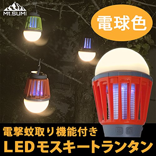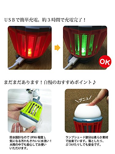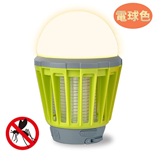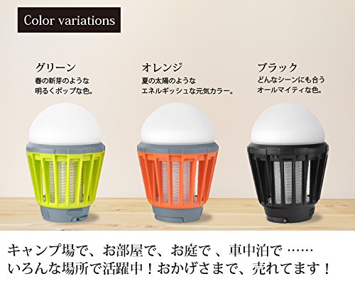 LEDモスキートランタン 暖かい電球色 【1年間保証付】UV紫光誘引式電撃殺虫器&照明両用 2000mAh容量 USB充電式 完全防水(グリーン)