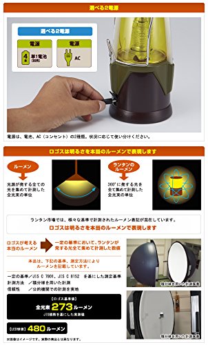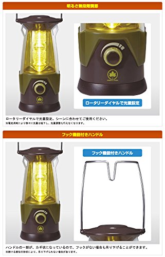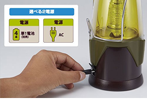 明るさが無段階に調節できるロータリーダイヤルのついた、温もりのある明かりが人気の暖色系LEDランタンです。電源は、電池(単一電池×4)とAC(コンセント)の2種類で、状況に応じて使い分けられます。