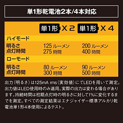 LEDで長寿命、バッテリーは単1電池4本で、最大500時間連続点灯可能と最強です。500時間というとピンとこないかもしれませんが、日にちに換算するとおよそ20日間になります。もしものことを考えると、持っていて安心な、頼れるランタンです。
