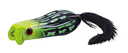 エバーグリーンから発売されているバブルトルネードは直線的に引いてこれるバズベイトです。多くのバズベイトが左右どちらかに曲がるのに対して、バブルトルネードはまっすぐ引いてこれることが特徴のルアーで、狙ったポイントをきっちりとトレースすることができます。岸際などに当てて使う場合には曲がるタイプでもいいのですが、基本的には狙ったコースを引いてこれるバブルトルネードがおすすめです。カラーはホットタイガーで、動き続けるルアーをブラックバスから見やすくしてあげることが釣果アップのコツです。