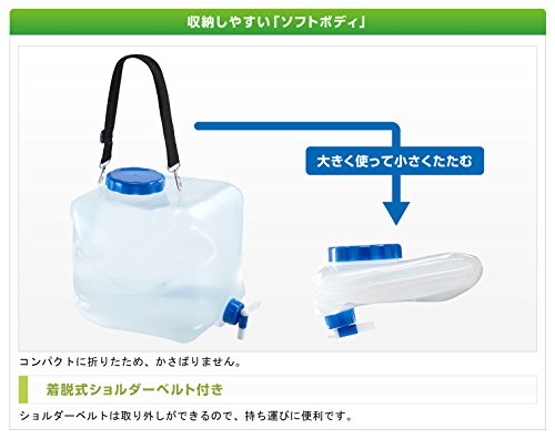 出典: https://www.amazon.co.jp/BUNDOK-%E3%83%90%E3%83%B3%E3%83%89%E3%83%83%E3%82%AF-%E3%82%A6%E3%82%A9%E3%83%BC%E3%82%BF%E3%83%BC-BD-300-%E3%81%9F%E3%81%9F%E3%82%81%E3%81%A6%E4%BE%BF%E5%88%A9/dp/B00VKMD9N2?SubscriptionId=AKIAJBJ6HJ4EEZO3BCLA&tag=a0997-22&linkCode=sp1&camp=2025&creative=165953&creativeASIN=B00VKMD9N2&ascsubtag=http://agripick.com/638ソフトタイプのウォータージャグは、保冷能力や安定性に欠けるものの、コンパクトに折りたためるので持ち運びや、移動に便利です。そのため防災用に持っていても重宝します。価格もお求め安いので、ハードタイプより容量が大きい為、アウトドア時の料理用や手洗い用、シャワー用などに使えます。ただし、折りたたみ型は、折り目部分が破損しやすいという欠点があります。