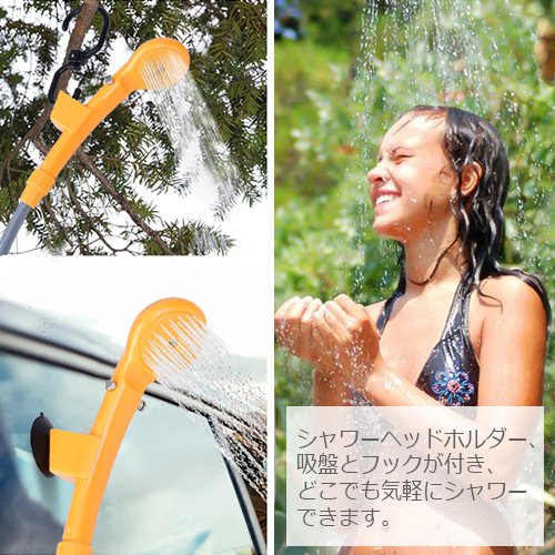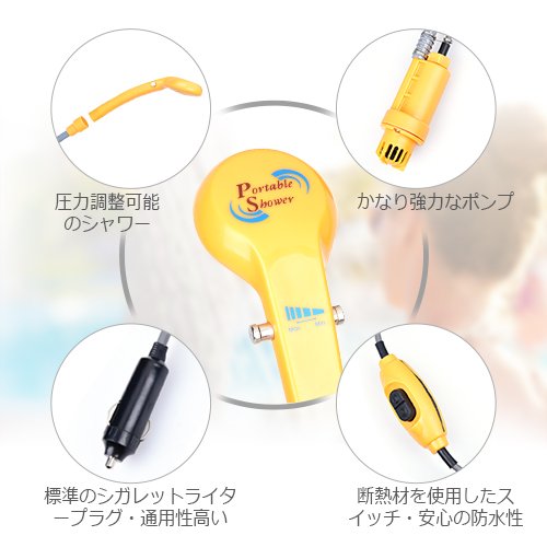 ポータブルシャワー-アウトドアシャワー CARCHET キャンプシャワー 海水浴 洗車 キャンプ レジャー 12V専用 軽量 コンパクト 簡易 携帯便利 災害 緊急用品