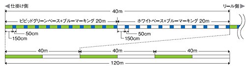 視覚性の高い独自のマーキングでアタリが取りやすく、独自のブレイデッド製法で適度な張りと強度を両立