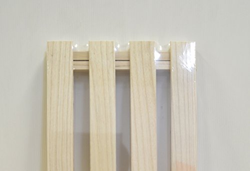 スノコの表板と内側連結角材を止める場合は、必ず内側からにしましょう。すのこ表面に釘やネジの頭が見えないのできれいに仕上がります。釘、木ネジの長さは表板から飛び出ないよう長さも設定しましょう。すのこの間が等間隔になるよう板などを挟んで、両面テープで連結角材を固定する製作しやすくなります。