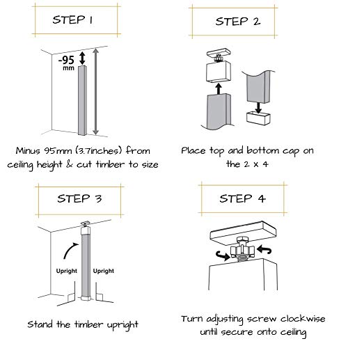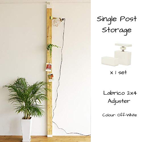 2×4材(38×89mm)専用 のアジャスターを利用して、釘を1本も使わずに柱を室内に建てることができます。仕組みとしては、突っ張り棒と同じで、伸び縮みできる部分を2x4材にはめて、しっかりと突っ張らしナットで固定るという簡単な仕組みです。賃貸など釘を打てない部屋には特に便利なアイテムです。