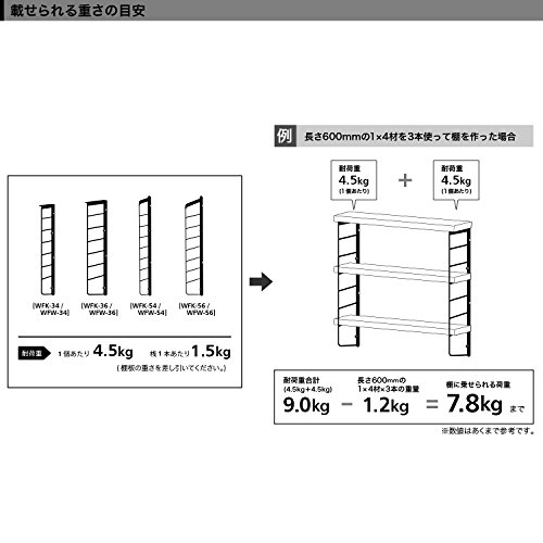 重量のあるものを載せる場合は、必ず柱のある位置にL字金具を固定して下さい。柱の位置は、通常30cmか45cm間隔で入っています。壁を叩いて位置を確認する方法もありますが、確認するための便利なアイテムもありますので活用することをお勧めします。L字金具を棚板の2/3までの長さのものを使用してください。短かいと重さがL字金具の根元にかかり強度に不安が発生します。