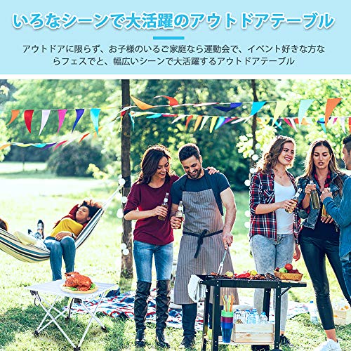 今までは大きな2つ折りのテーブルを 積んでいましたが子どもも大きくなり 車の積載を圧迫されてしまうので 折りたためるコンパクトなこちらのテーブルを 購入しました。 強度も十分にありアルミ製なので手入れも楽になり 今後もう一つ追加購入を考えています。