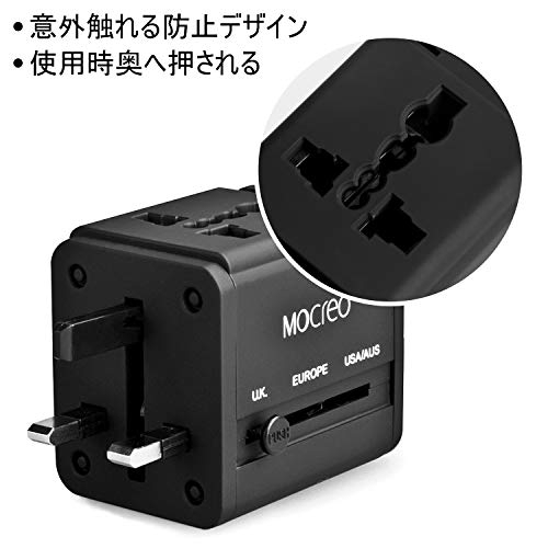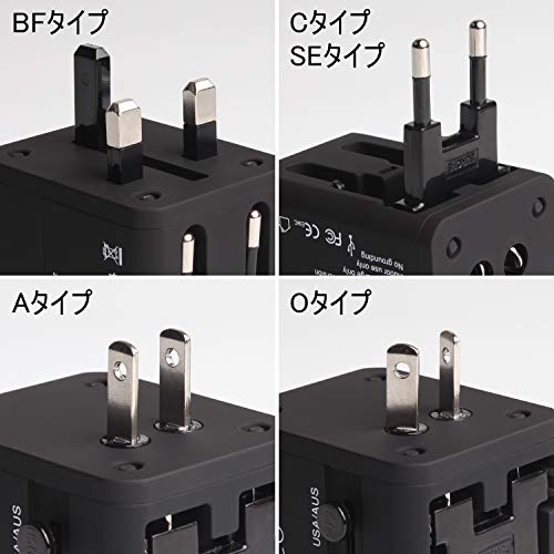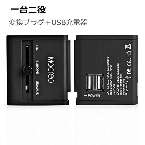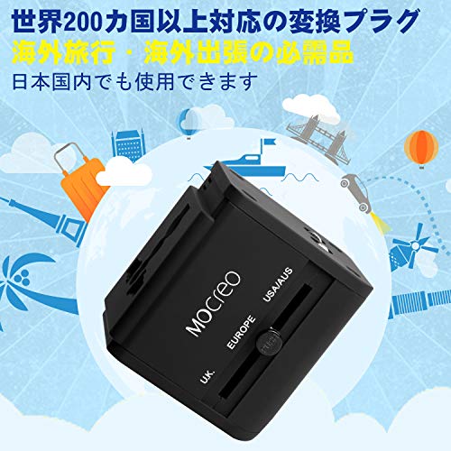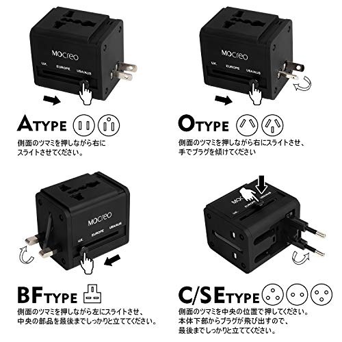 MOCREO 海外旅行用変換プラグ マルチコンセントアダプター A・BF・C・O・SEタイプセット USB充電ポート2個付 ブラック