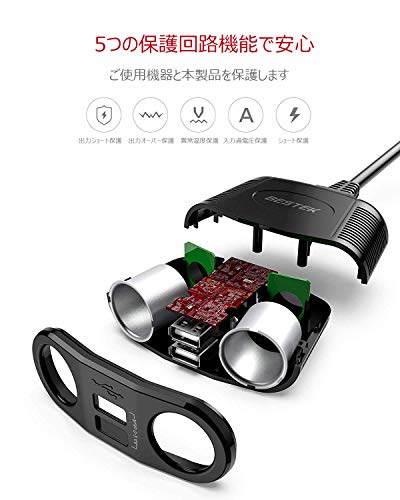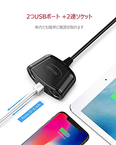 BESTEK シガーソケット 充電器 2連 USB 2ポート 12V/24V車対応 LED付き MRS152UV