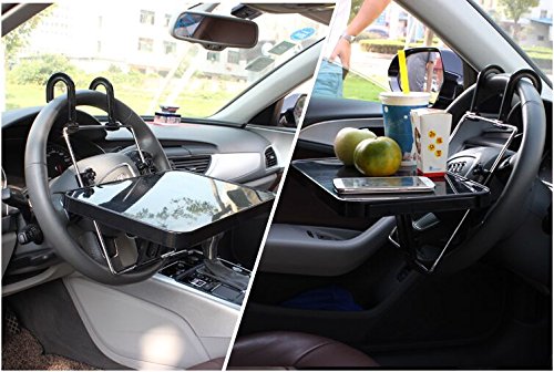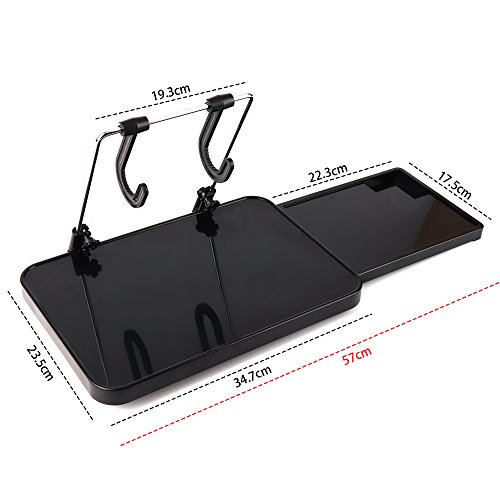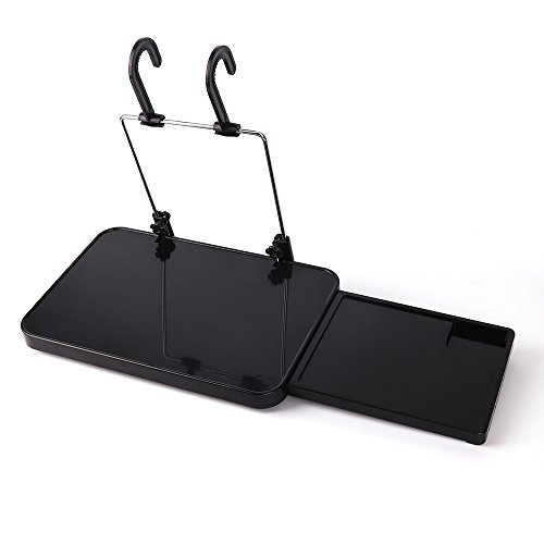 KEMIMOTO 車載用テーブル 車用簡易テーブル ノートパソコン用テーブル サイドテーブル付き カーテーブル 折りたたみ ABS素材 丈夫耐用 角度と高さ調整可能 ハンドルとヘッドレストに取り付け パソコン作業・食事・地図の確認等対応