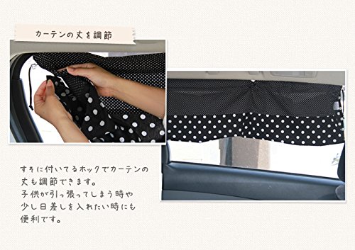 かわいく日差しを遮る♪【UVカット 車用日よけカーテン】1枚 車の移動中もベビーを紫外線から優しく守る♪【日本製】 (ドットブラック)