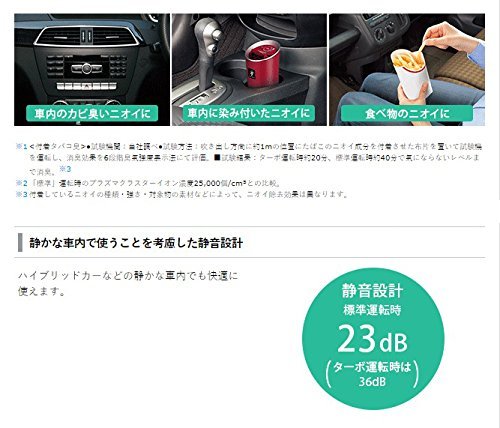 シャープ イオン発生機 車用 カップホルダータイプ プラズマクラスター25000搭載は車に染みついた臭いやカビの臭い、食べ物の臭いを全て吸い取ってくれます。特に食事をした後に使用すると効果的で、車の中の環境をいつでも良い状態に保つ事ができます。静音設計になっているので、消臭を行っている際の音は全く無く、車の中にいる時により快適に過ごせます。
