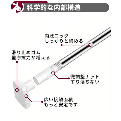 ねじや釘を使わずに壁にしっかりと固定できる伸縮棒です。パイプ先端のL字型圧着部を広くすることで、耐荷重がより強化されています。ネジやクギを使わずに壁にしっかり固定できるので、様々な場所に取り付けられるのがポイント。